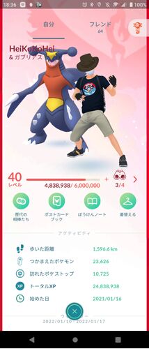 2021年1月16日に始めたポケモンGO。本日でプレイ日数が1年に到達。 トレーナーレベルは40、歩いた距離は1596km。一日に歩いた距離は約4km。ガッツリ10km以上歩いた日もあれば、雨とかで全く歩かなかった日もあるので、妥当な感じ CP順に並べた今の手持ち 今…