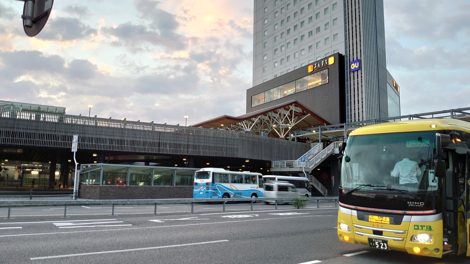 仕事が終わり、八重洲口鍛冶橋駐車場まで移動。ここで岡山駅行きの高速バスに乗車。今回の移動手段、飛行機か新幹線か高速バスかで悩んだ結果、高速バスを選択。値段に釣られてしまったのだが、今回の旅唯一の後悔ポイント。高速バスはキツすぎる。とても休めない。次があったら高速バスは選択しないだろう。