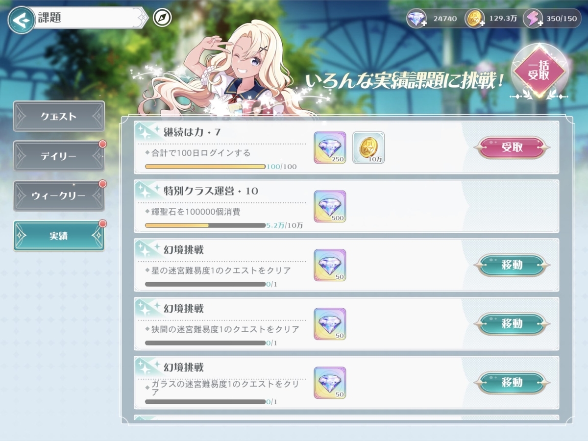 そしてクエストの種類が多いんですよね。毎日周回するクエストだけでも「魔女の舞台」「素材クエスト(3種類)」「ユニットクエスト」「カードクエスト(カードごとにクエスト内容が異なる)」「ノーマルクエスト」「ハードクエスト」。加えて「魔女試験」「アリーナ(PvP)」「幻境(応援会*3専用クエスト)」。